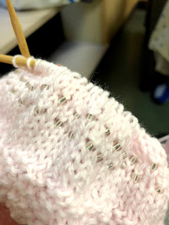 A hat for my oldest in ballet pink (red heart yarn she picked) with some silver beads. No pattern, and ended up running elastic thread through a couple rows to make it more secure on her head for now, until she grows into it some more.
